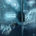 Fietsen op een natte straat. Een typisch Nederlandse bezigheid. Omdat een groot deel van het schilderij uit reflectie bestaat, maar de fiets en de bandensporen weer niet kijk je in feite naar twee werelden tegelijk. Nederland en spiegelland.